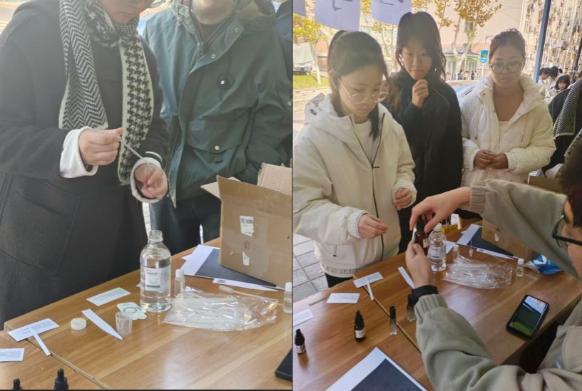 为了提升大学生对香水的认知,丰富美学素养与生活情趣,pg电子官网平台于11月30日在玉兰路举办了香水科普活动。