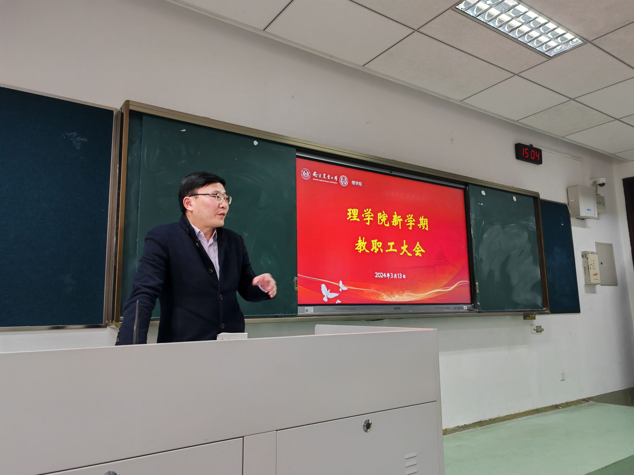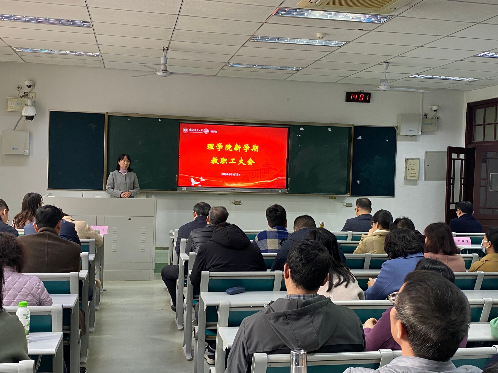 3月13日下午,pg电子官网平台在主楼115召开新学期全体教职工大会暨本科教育教学审核评估工作动员大会。会议由党委副书记(主持工作)吴彦宁主持,学院党政领导班子成员以及全体教职工参加会议。